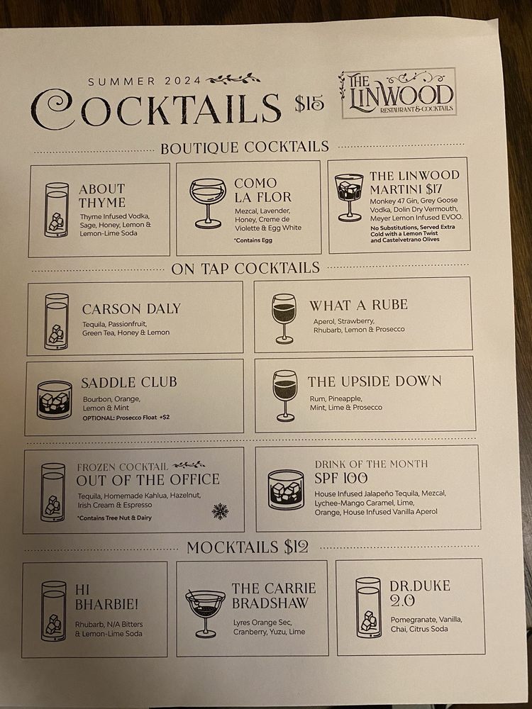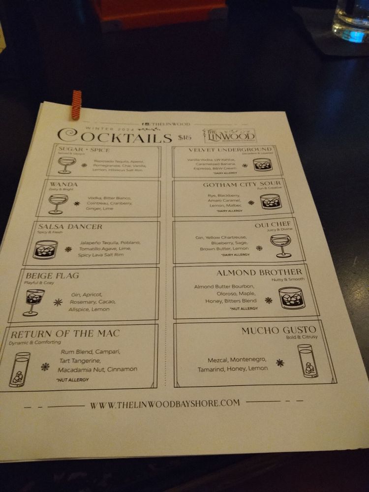 The Linwood Restaurant and Cocktails in Bay Shore offers a trendy yet relaxed ambiance, making it perfect for a night out with friends or a cozy date. The cocktail menu is creative and well-crafted, with unique drinks that stand out. The food menu complements the cocktails, offering fresh and flavorful small plates. The service is friendly and attentive, despite occasional busyness. Overall, Linwood Cocktails is a gem with delicious drinks, tasty bites, and an enjoyable atmosphere. The reviews commend the original dishes, great cocktails, and friendly staff. The cheese curds and cocktails are highlighted as must-tries, making it a worthwhile choice for quality cocktails and good company. The buffet-style food setup adds a pleasant surprise to the dining experience. In summary, Linwood Cocktails is a standout spot in Bay Shore, not to be missed for a memorable evening out.